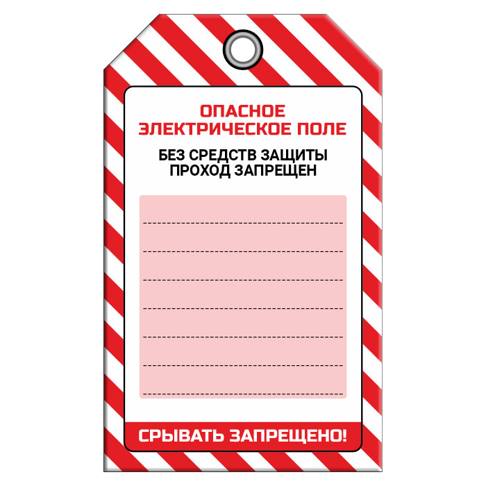 Бирка «ОПАСНОЕ ЭЛЕКТРИЧЕСКОЕ ПОЛЕ» (1 шт., односторонняя, пластик, 70х115 мм) в Химках купить