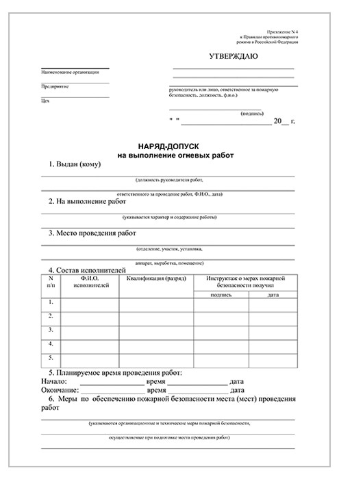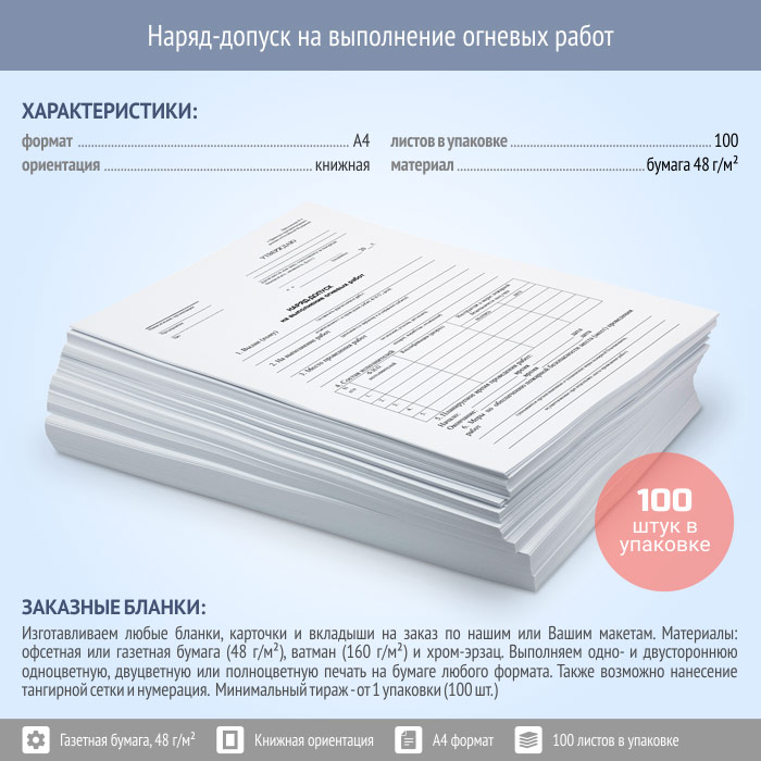 Наряд-допуск на выполнение огневых работ (упаковка из 100 штук) в Химках купить