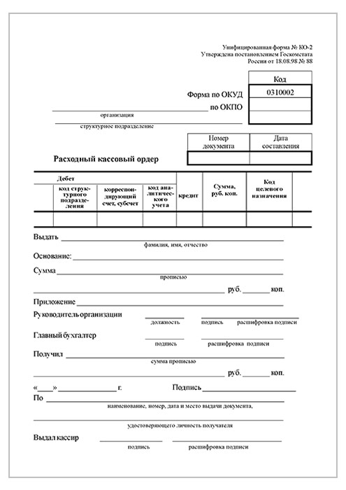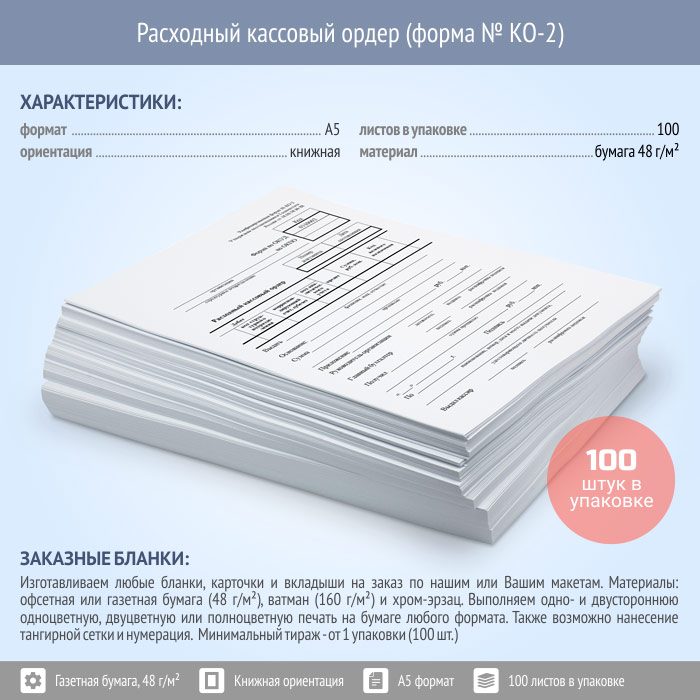 Расходный кассовый ордер (форма № КО-2, упаковка из 100 штук) в Химках купить