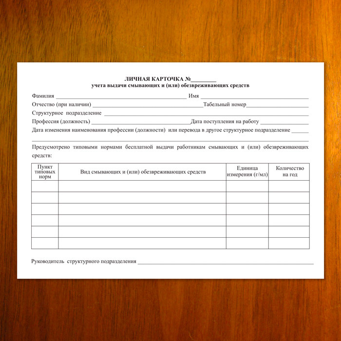 Личная карточка учёта выдачи смывающих и (или) обезвреживающих средств (упаковка из 100 штук) в Химках купить