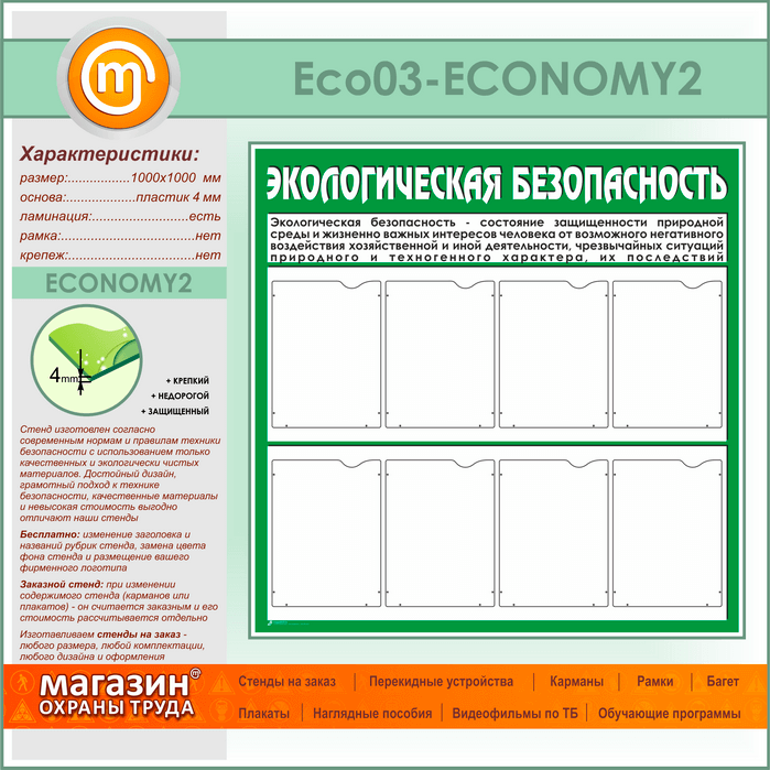 Стенд «Экологическая безопасность» с 8 карманами (ECO-03-ECONOMY2) в Химках купить