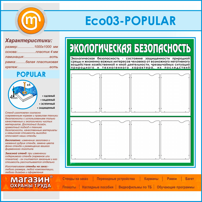Стенд «Экологическая безопасность» с 8 карманами (ECO-03-POPULAR) в Химках купить