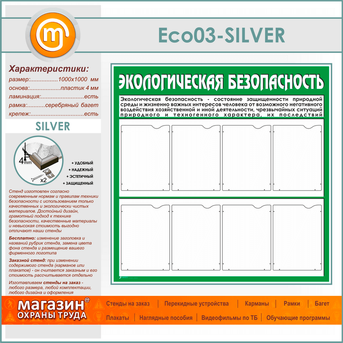Стенд «Экологическая безопасность» с 8 карманами (ECO-03-SILVER) в Химках купить