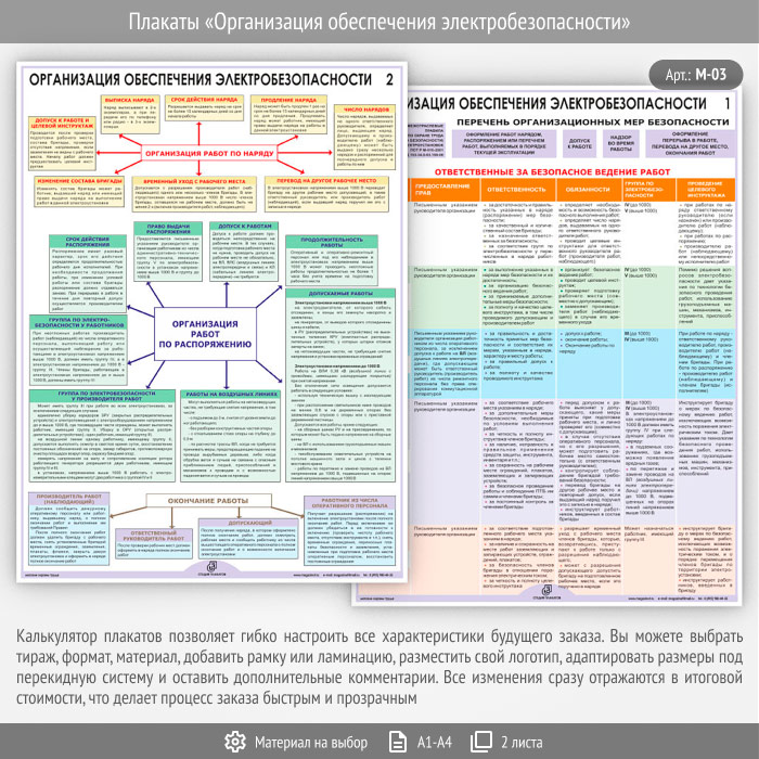 Плакаты «Организация обеспечения электробезопасности» (М-03, 2 листа) в Химках купить