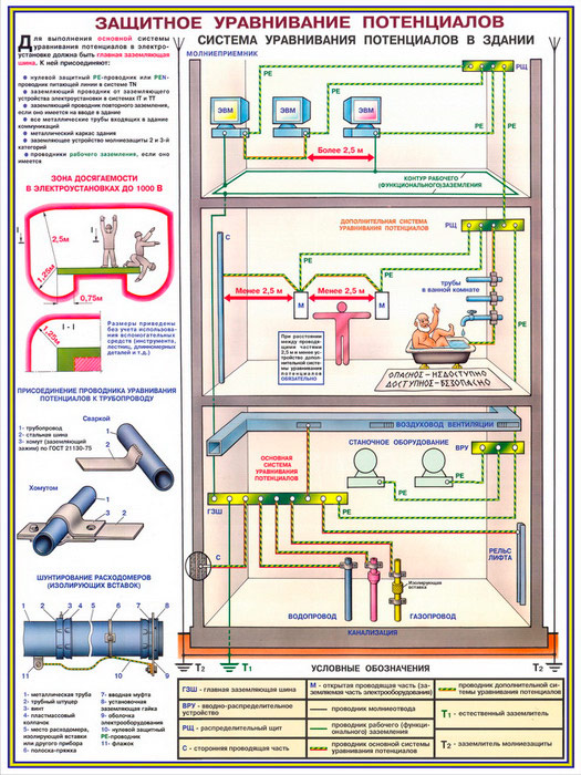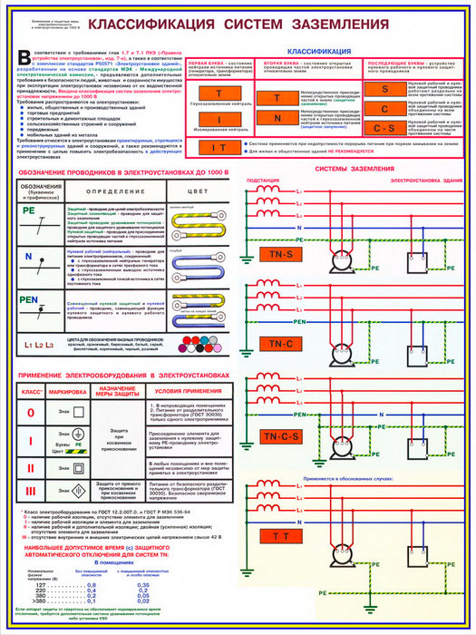 Плакаты «Заземление и защитные меры электробезопасности - напряжение до 1000В» (С-61, ламинированная бумага, А2, 4 листа) в Химках купить