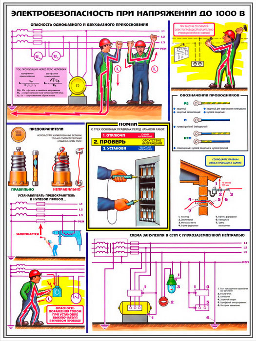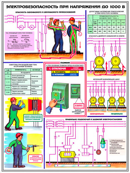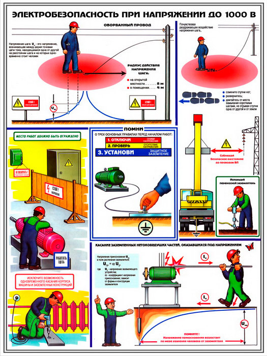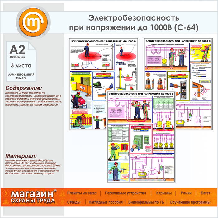 Плакаты «Электробезопасность при напряжении до 1000В» (С-64, ламинированная бумага, А2, 3 листа) в Химках купить