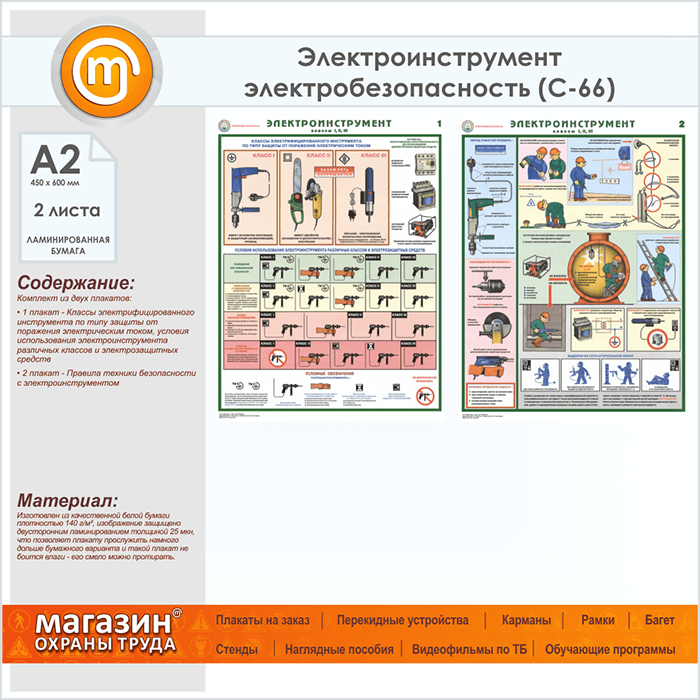 Плакаты «Электроинструмент - электробезопасность» (С-66, ламинированная бумага, А2, 2 листа) в Химках купить
