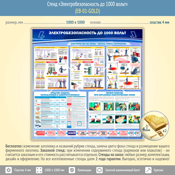 Стенд «Электробезопасность до 1000 вольт» (EB-01-GOLD) в Химках купить