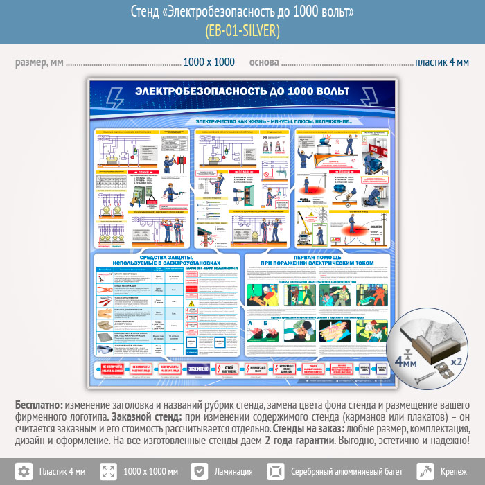 Стенд «Электробезопасность до 1000 вольт» (EB-01-SILVER) в Химках купить