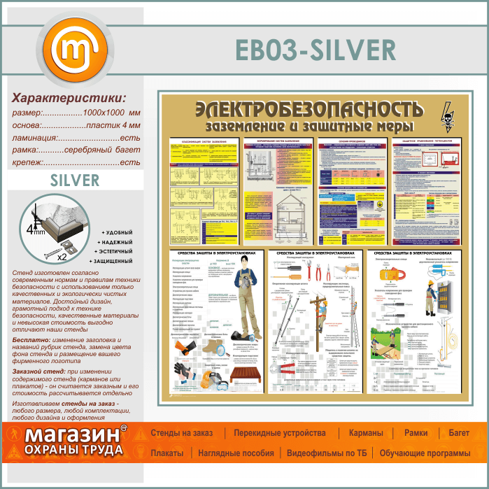 Стенд «Электробезопасность. Заземление и защитные меры» (EB-03-SILVER) в Химках купить