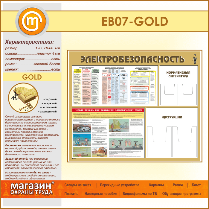 Стенд «Электробезопасность» с 4 объемными карманами (EB-07-GOLD) в Химках купить