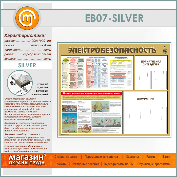 Стенд «Электробезопасность» с 4 объемными карманами (EB-07-SILVER) в Химках купить