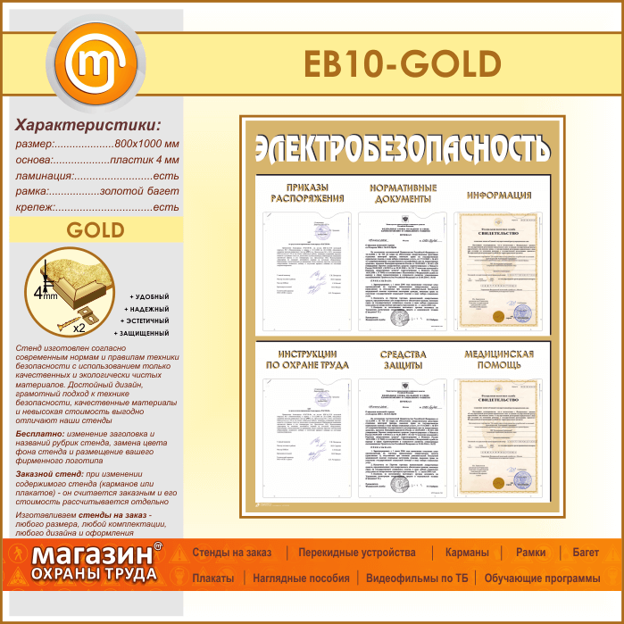 Стенд «Электробезопасность» с 6 карманами (EB-10-GOLD) в Химках купить