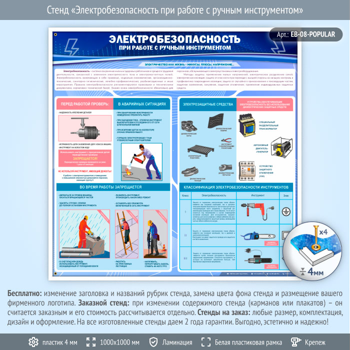 Стенд «Электробезопасность при работе с ручным инструментом» (EB-08-POPULAR) в Химках купить