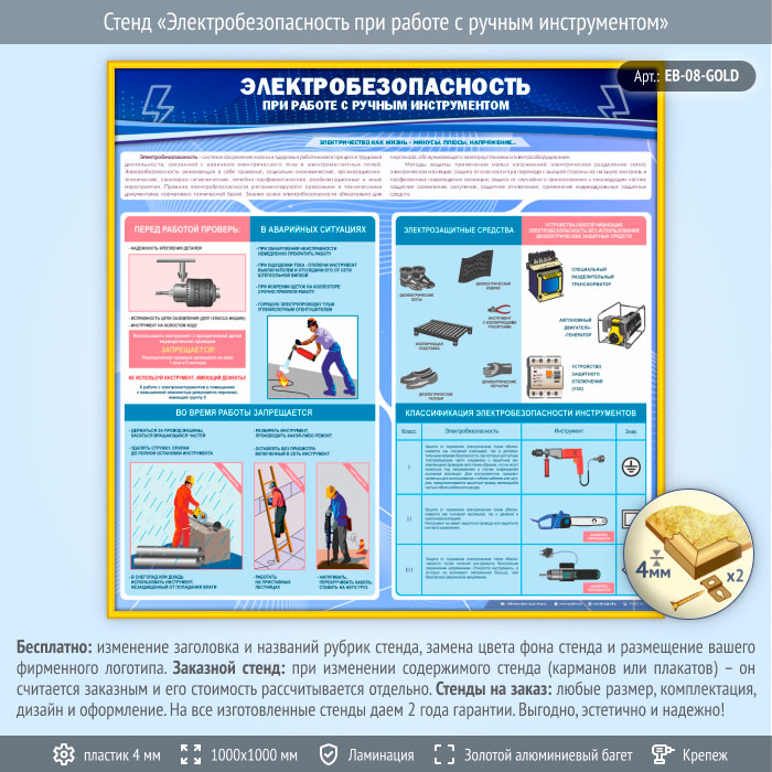Стенд «Электробезопасность при работе с ручным инструментом» (EB-08-GOLD) в Химках купить