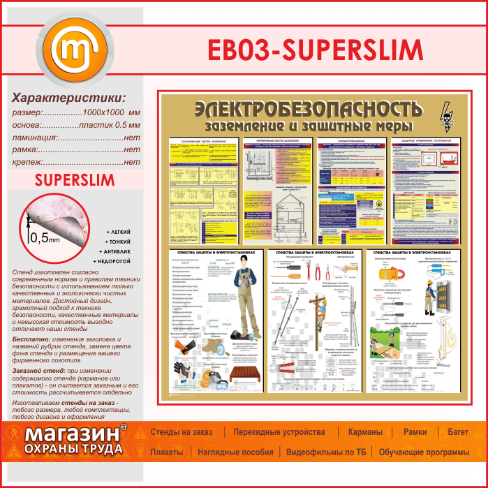 Стенд «Электробезопасность. Заземление и защитные меры» (EB-03-SUPERSLIM) в Химках купить