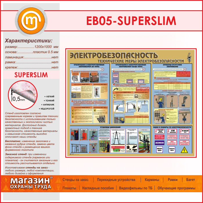 Стенд «Электробезопасность. Технические меры электробезопасности» (EB-05-SUPERSLIM) в Химках купить
