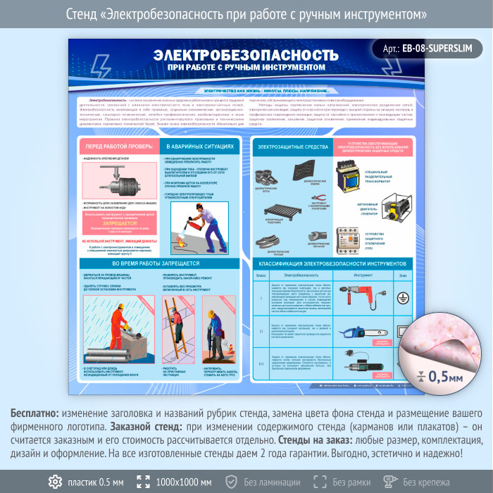 Стенд «Электробезопасность при работе с ручным инструментом» (EB-08-SUPERSLIM) в Химках купить