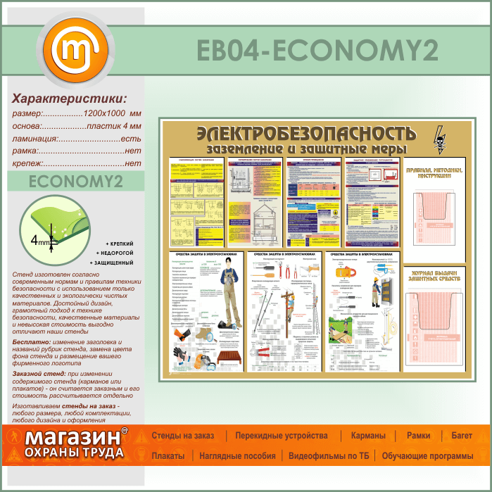 Стенд «Электробезопасность. Заземление и защитные меры» с 2 объемными карманами (EB-04-ECONOMY2) в Химках купить