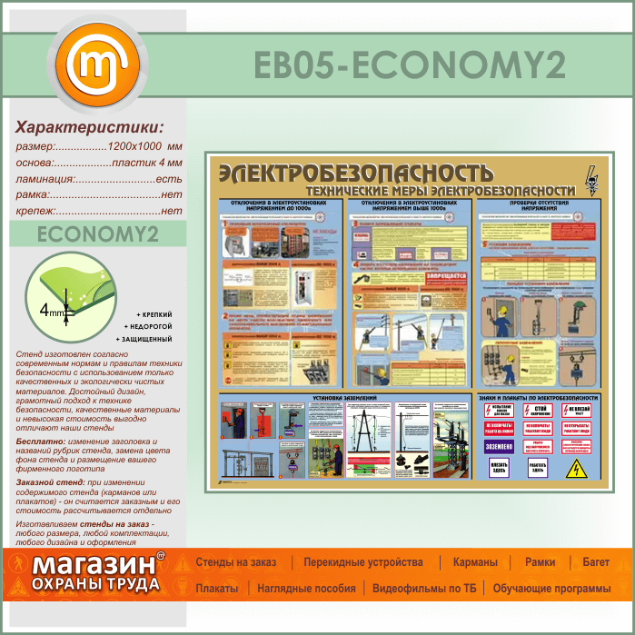 Стенд «Электробезопасность. Технические меры электробезопасности» (EB-05-ECONOMY2) в Химках купить