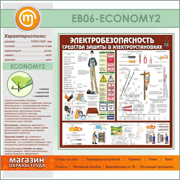 Стенд «Электробезопасность. Средства защиты в электроустановках» (EB-06-ECONOMY2) в Химках купить