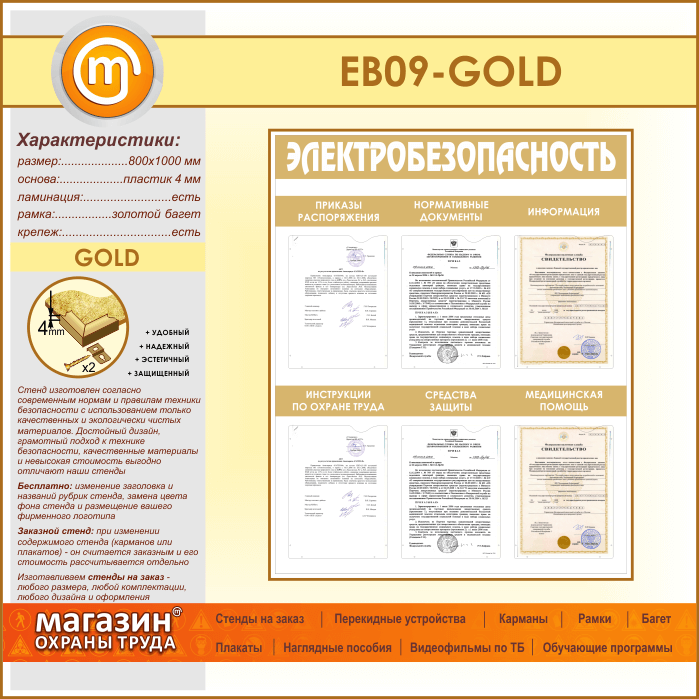 Стенд «Электробезопасность» с 6 карманами (EB-09-GOLD) в Химках купить