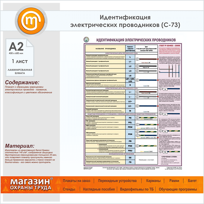 Плакат «Идентификация электрических проводников» (С-73, ламинированная бумага, А2, 1 лист) в Химках купить