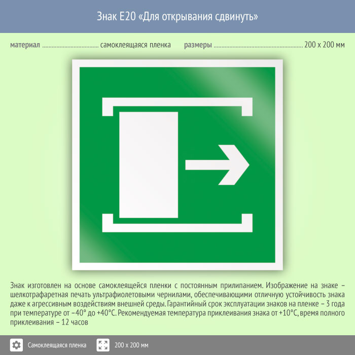 Знак E20 «Для открывания сдвинуть» (пленка, 200х200 мм) в Химках купить