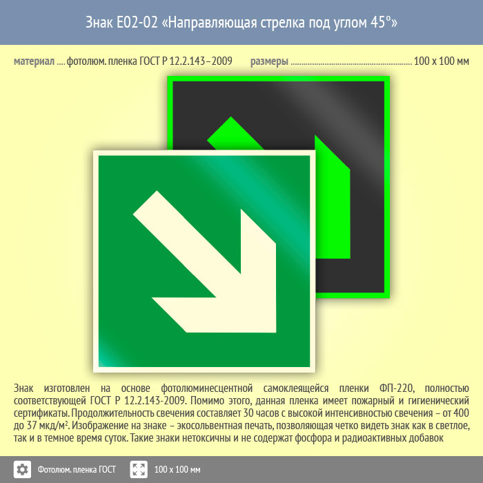 Знак E02-02 «Направляющая стрелка под углом 45°» (фотолюминесцентная пленка ГОСТ 34428-2018, 100х100 мм) в Химках купить
