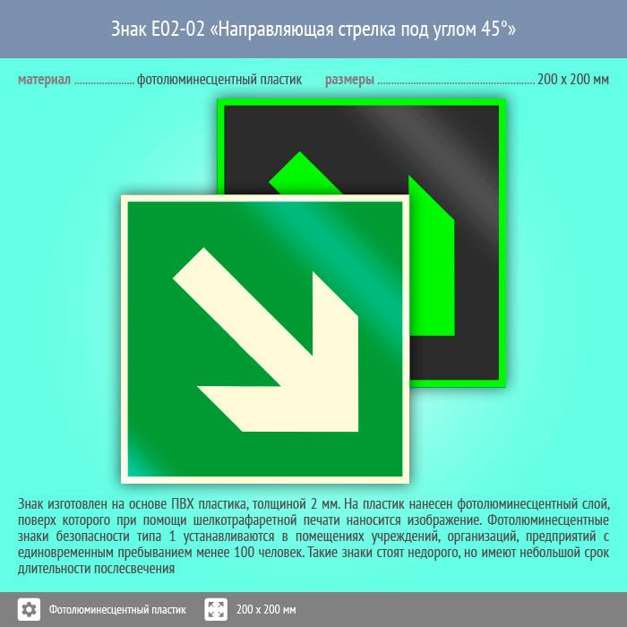 Знак E02-02 «Направляющая стрелка под углом 45°» (фотолюминесцентный пластик, 200х200 мм) в Химках купить
