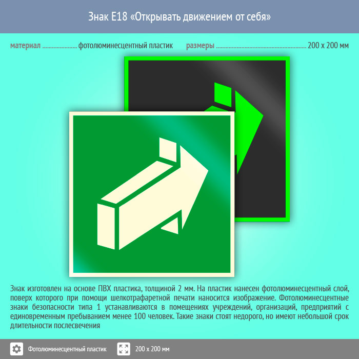Знак E18 «Открывать движением от себя» (фотолюминесцентный пластик, 200х200 мм) в Химках купить