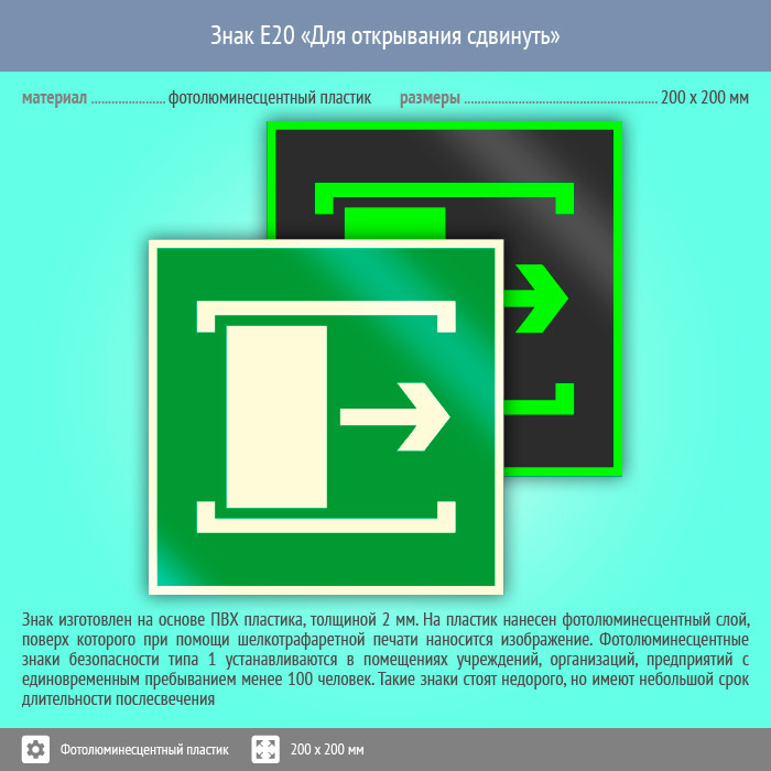 Знак E20 «Для открывания сдвинуть» (фотолюминесцентный пластик, 200х200 мм) в Химках купить