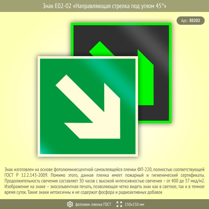 Знак E02-02 «Направляющая стрелка под углом 45°» (фотолюминесцентная пленка ГОСТ 34428-2018, 150х150 мм) в Химках купить