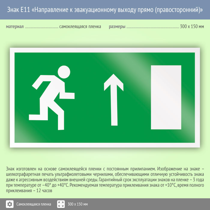 Знак E11 «Направление к эвакуационному выходу прямо (правосторонний)» (пленка, 300х150 мм) в Химках купить