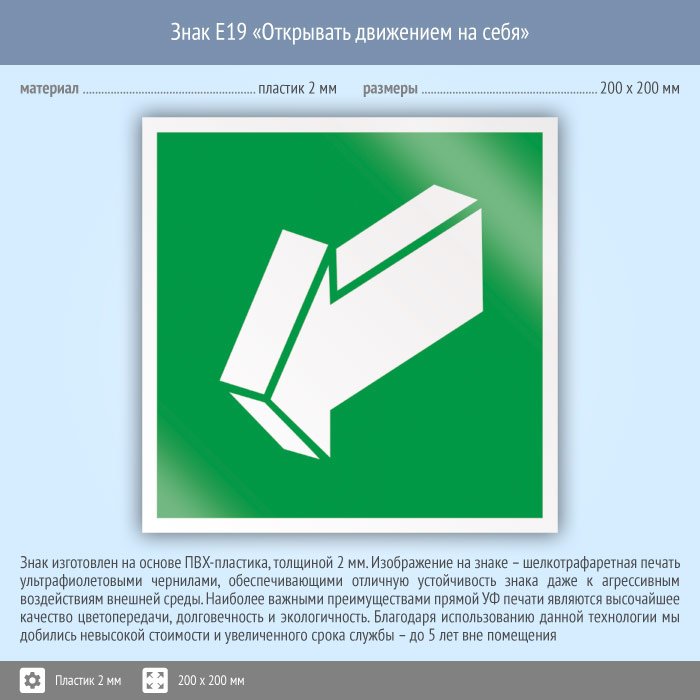 Знак E19 «Открывать движением на себя» (пластик, 200х200 мм) в Химках купить