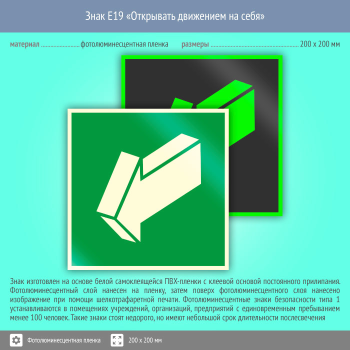 Знак E19 «Открывать движением на себя» (фотолюминесцентная пленка, 200х200 мм) в Химках купить