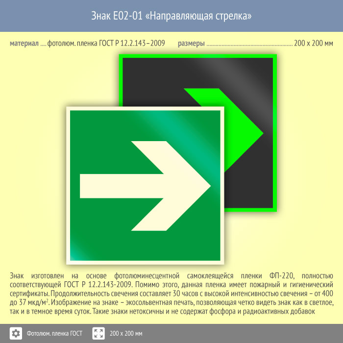 Знак E02-01 «Направляющая стрелка» (фотолюминесцентная пленка ГОСТ 34428-2018, 200х200 мм) в Химках купить