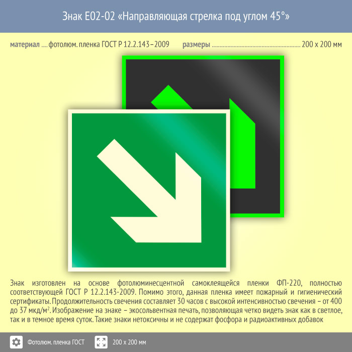 Знак E02-02 «Направляющая стрелка под углом 45°» (фотолюминесцентная пленка ГОСТ 34428-2018, 200х200 мм) в Химках купить