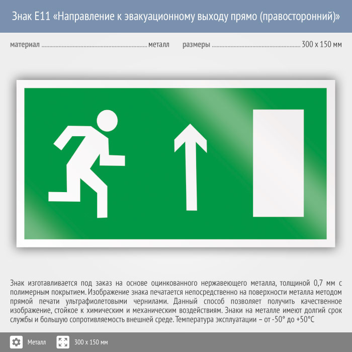 Знак E11 «Направление к эвакуационному выходу прямо (правосторонний)» (металл, 300х150 мм) в Химках купить