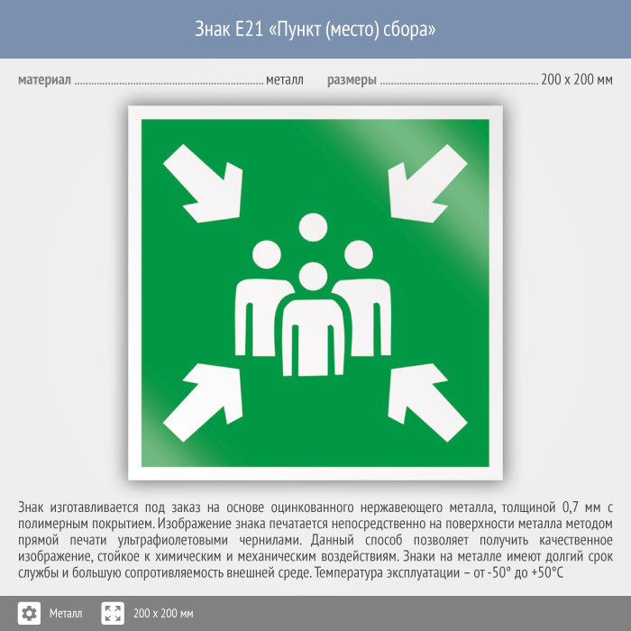 Знак E21 «Пункт (место) сбора» (металл, 200х200 мм) в Химках купить