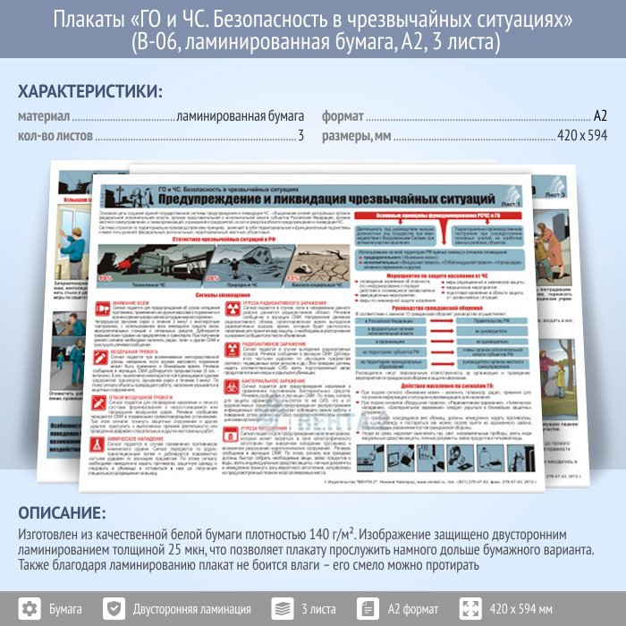 Плакаты «ГО и ЧС. Безопасность в чрезвычайных ситуациях» (В-06, ламинированная бумага, А2, 3 листа) в Химках купить