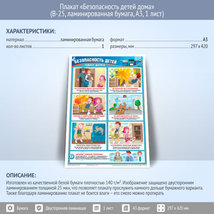 Плакат «Безопасность детей дома» (В-25, ламинированная бумага, А3, 1 лист) в Химках купить