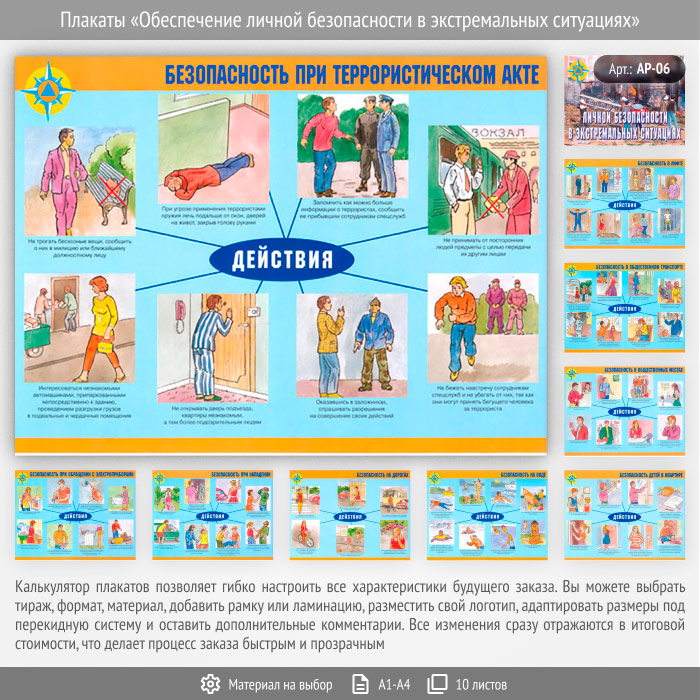 Плакаты «Обеспечение личной безопасности в экстремальных ситуациях» (АР-06, 10 листов) в Химках купить