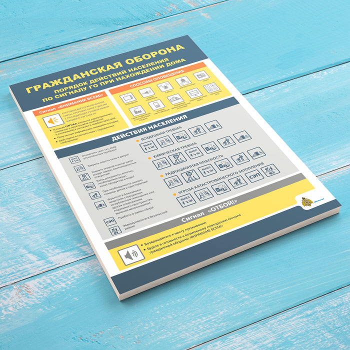 Плакат «Гражданская оборона. Порядок действия населения по сигналу ГО при нахождении дома» (МЧС-04, 1 лист) в Химках купить