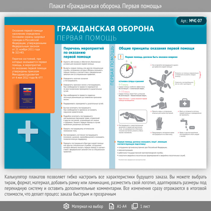Плакат «Гражданская оборона. Первая помощь» (МЧС-07, 1 лист) в Химках купить