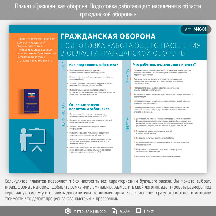 Плакат «Гражданская оборона. Подготовка работающего населения в области гражданской обороны» (МЧС-08, 1 лист) в Химках купить