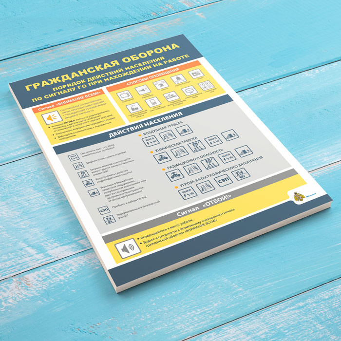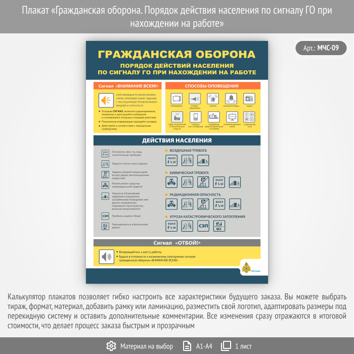 Плакат «Гражданская оборона. Порядок действия населения по сигналу ГО при нахождении на работе» (МЧС-09, 1 лист) в Химках купить