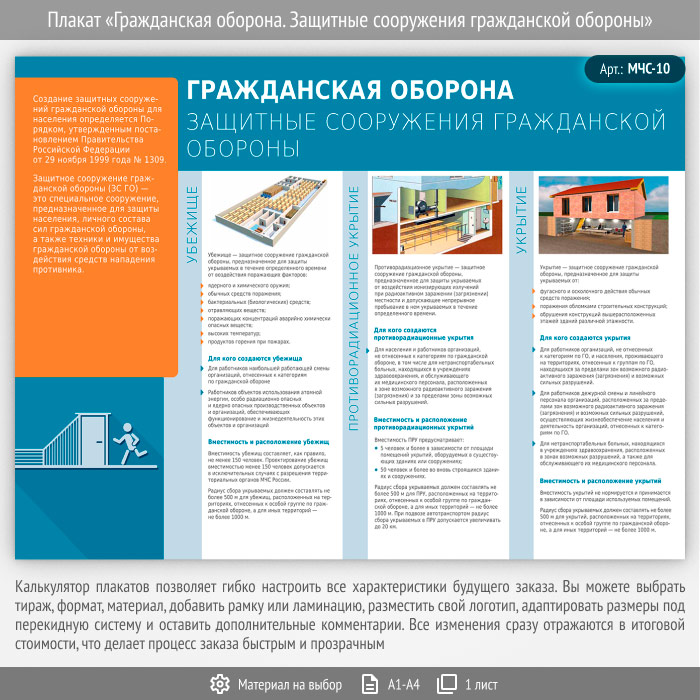 Плакат «Гражданская оборона. Защитные сооружения гражданской обороны» (МЧС-10, 1 лист) в Химках купить