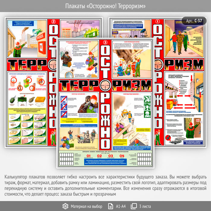 Плакаты «Осторожно! Терроризм» (С-37, 3 листа) в Химках купить