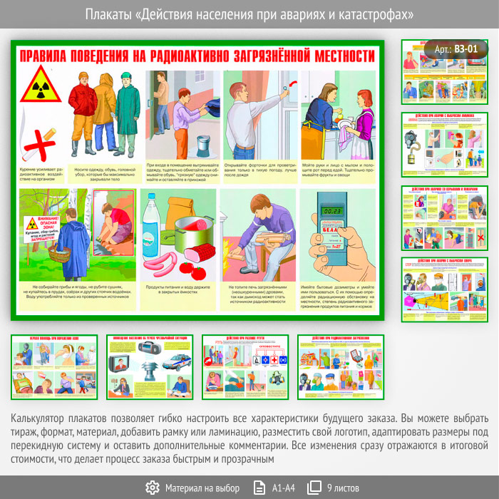 Плакаты «Действия населения при авариях и катастрофах» (ВЗ-01, 9 листов) в Химках купить
